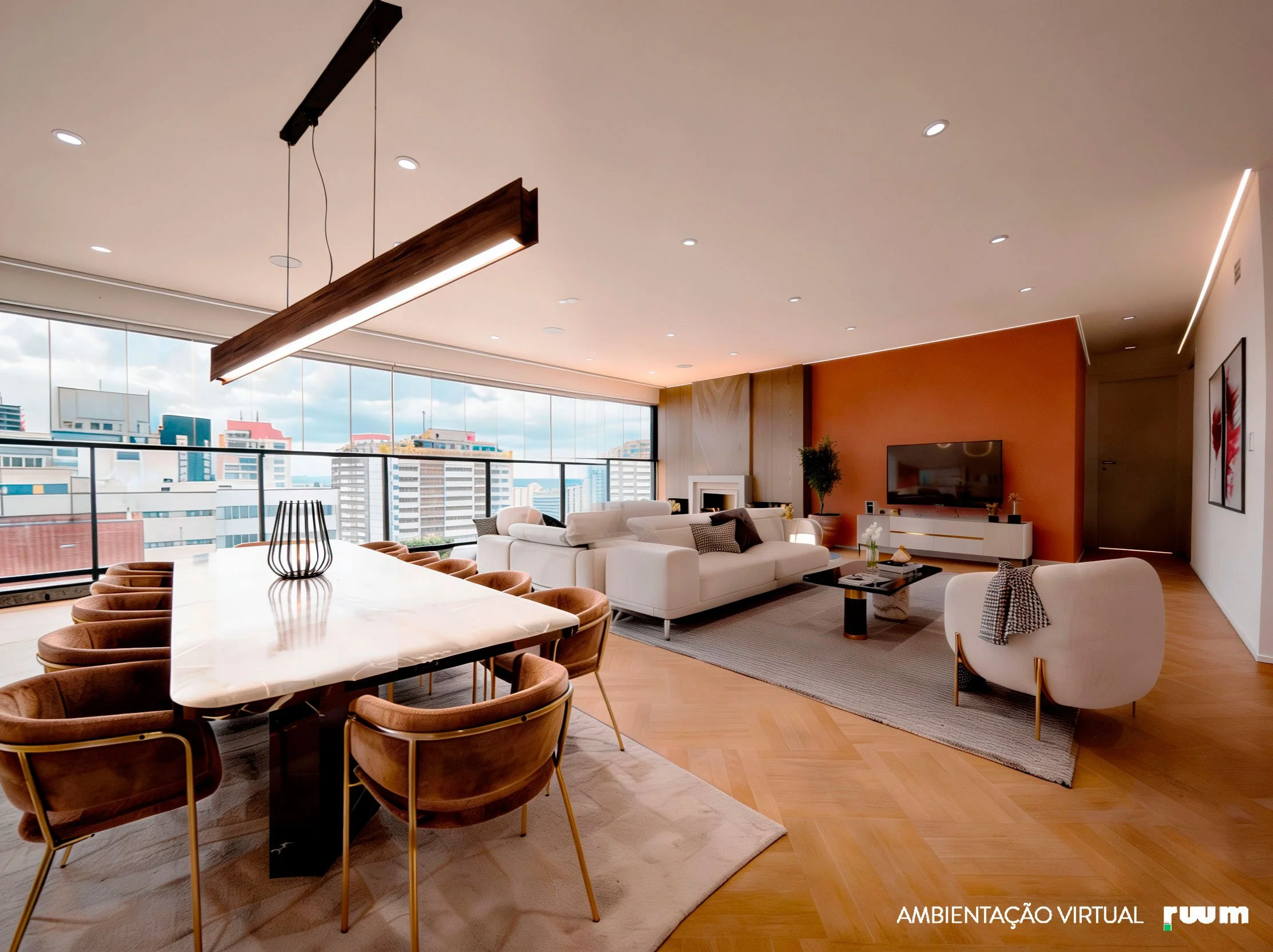 A parceria com a RUUM não seguiu uma fórmula única. Dependendo do imóvel, a solução aplicada variava: ambientação virtual em espaços vazios, atualização de decoração em imóveis mobiliados, ou uma combinação dos dois.