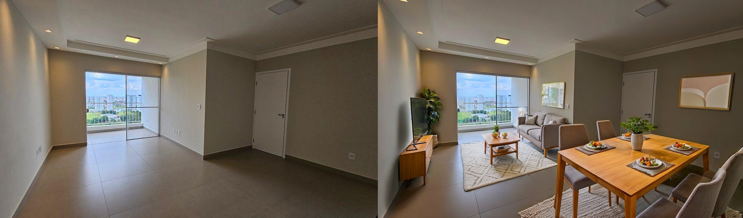 A partir das imagens do espaço vazio, nossa equipe aplicou o Virtual Staging, combinando inteligência artificial e curadoria de arquitetos.